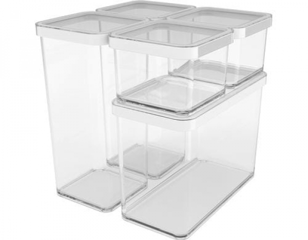 Rotho Vorratsdose Loft 5 Stück, 6.1 l, Transparent/Weiss / 21,4 x 21,4 x 23,5 / Thema: Vorratsdosen