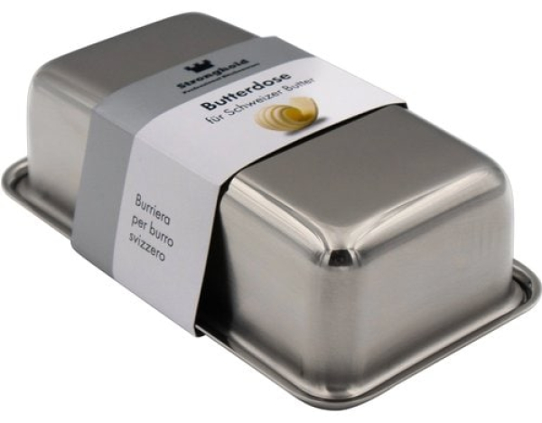 Stronghold Butterdose für CH Butter Silber / Inox, 15.5 x 8.5 cm, H 5 cm / Thema: Lebensmittelspender