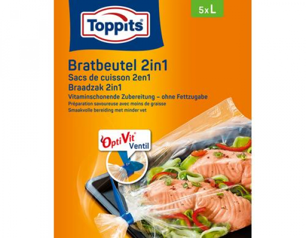Toppits Bratbeutel 2 in 1 Grösse L, 5 Stück / Grösse L, 37 x 43 cm, Inhalt: 5 Stk. / Thema: Bratbeutel