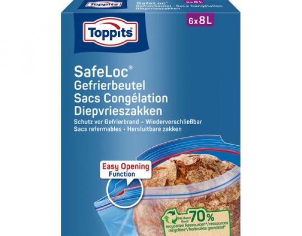 Toppits Gefrierbeutel Doppelverschluss SafeLoc, 6 Stück / 8 Liter, 6 Stück / Thema: Gefrierbeutel