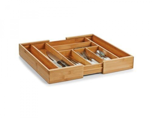 Zeller Present Besteckkasten Bamboo Braun / 8 Fächer, ausziehbar 35-58x43x6.5cm / Thema: Besteckkasten