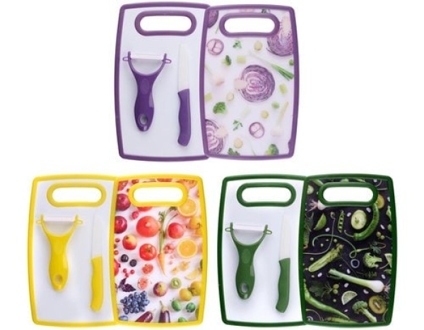 alpina Schneidebrett und Sparschäler mit Messer assortiert / 25x16x1.2 cm, 252g, PP/C / Thema: Schäler