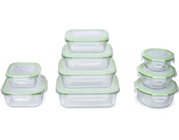 alpina Vorratsdosen-Set 18 Stück, 5.96 l, Grün/Transparent / 370/640/1050/1520/210/400/650/320/800ml / Thema: Vorratsdosen