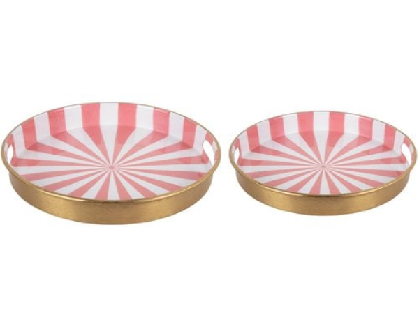 present time Serviertablett Candy Swirl 2 Stück, Rosa/Weiss / Set mit 2 Stück, Eisen, Flamingo/Weiss / Thema: Serviertablett