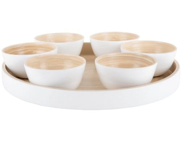 present time Snackschale Puro 32 cm, 7-teilig, Weiss / Bambus, 32x2.5cm, Weiss / Thema: Schüsseln & Schalen
