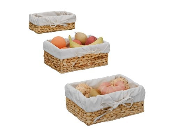 relaxdays Brotkorb Set Creme/Hellbraun / 3 Stück, mit Baumwolleinsatz / Thema: Brotkorb