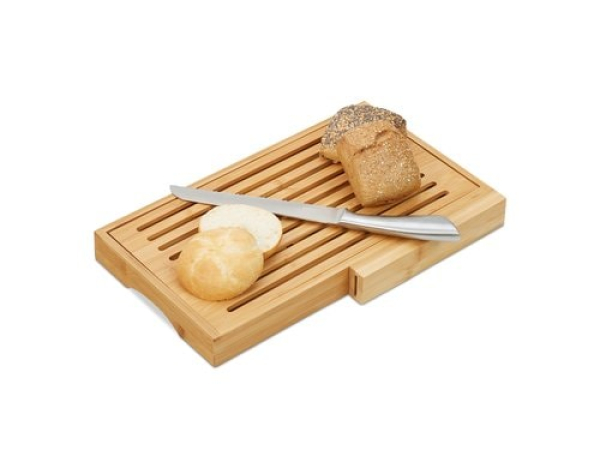 relaxdays Brotschneidebrett mit Messer Natur / Bambus aus China / Thema: Schneidebrett