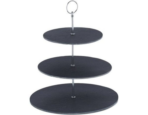 relaxdays Etagere 3-stufig, Anthrazit/Silber / Schiefer / Thema: Etagere & Tortenständer