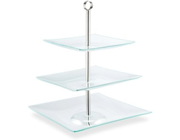 relaxdays Etagere eckig, 3-stufig, Silber/Transparent / Glas / Thema: Etagere & Tortenständer