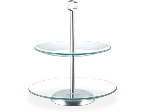 relaxdays Etagere rund, 2-stufig, Silber/Transparent / Glas / Thema: Etagere & Tortenständer