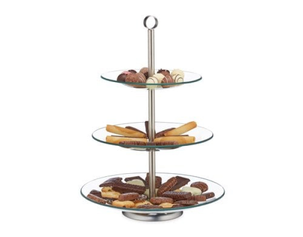 relaxdays Etagere rund, 3-stufig, Silber/Transparent / Glas / Thema: Etagere & Tortenständer