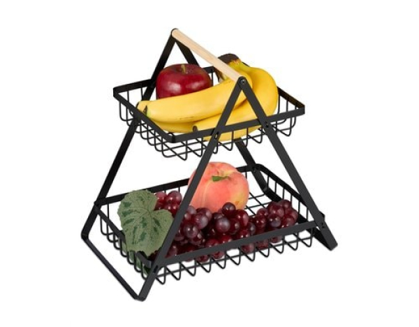 relaxdays Früchtekorb 2-stöckig Schwarz / Eisen / Thema: Schüsseln & Schalen