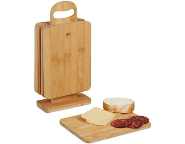 relaxdays Frühstücksbrett 6 Stück, Natur / 6 Stück, Bambus aus China / Thema: Schneidebrett