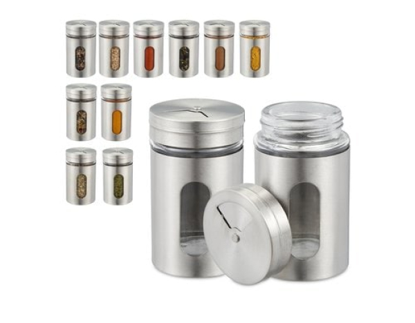 relaxdays Gewürzstreuer Silber/Transparent / 12 Stück Silber / Thema: Streuer
