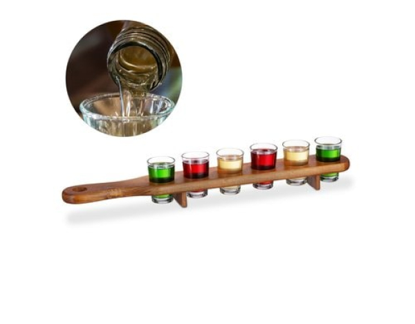 relaxdays Servierplatte mit 6 Gläser Braun, Transparent / Glas/MDF aus China / Thema: Servierplatten
