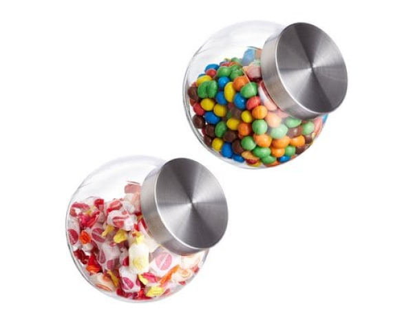 relaxdays Vorratsglas 2er Set, 1,5 L / 2 Stück, Glas/Edelstahl / Thema: Vorratsdosen