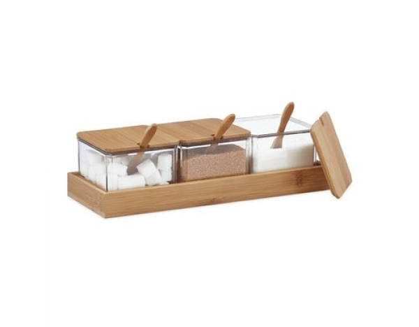 relaxdays Zuckerdose 400 ml, 3 Stück, Braun / Bambus, China / Thema: Lebensmittelspender