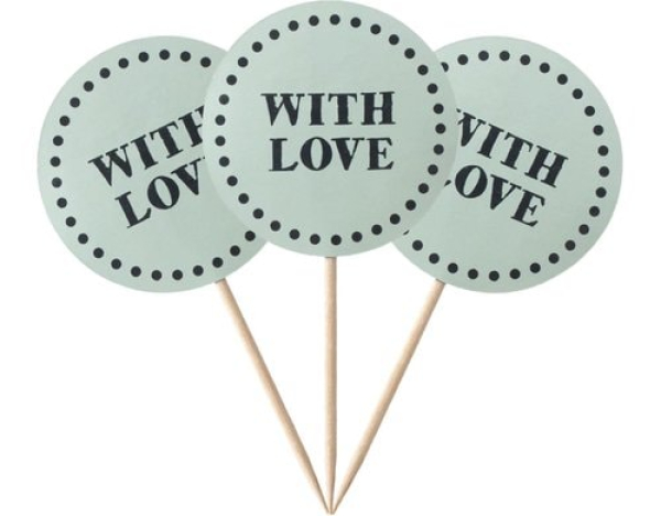Demmler Deko Picker with Love 8 Stück, Schwarz/Weiss / 8 Stk, 42x90mm / Thema: Caketopper