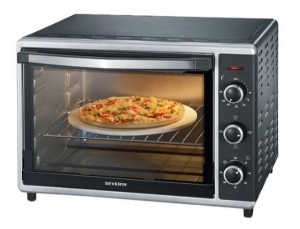 Der Severin Toastofen TO 2058 mit Umluftfunktion und einem 42 Liter Garraum eignet sich wunderbar zum Zubereiten von Toast, Kroketten oder anderen Ofengerichten. Zudem ist er auch für große Pizzen mit bis zu 29 cm Durchmesser geeignet. Er bietet mit Ober-/Unterhitze und Umluftfunktion viele Möglichkeiten für gleichmäßige Gar- und Backergebnisse. Die Temperatur lässt sich stufenlos über einen Drehregler zwischen 60-230°C einstellen. Der Toastofen TO 2058 verfügt über einen praktischen Drehspieß für die Zubereitung von Fleisch und Geflügel sowie einem Pizzastein. Das herausnehmbare Krümelblech erleichtert die Reinigung des Ofens. Im Lieferumfang ist ein Grill- und Backrost und ein Backblech mit 38,5 x 31,5 cm Fläche enthalten.