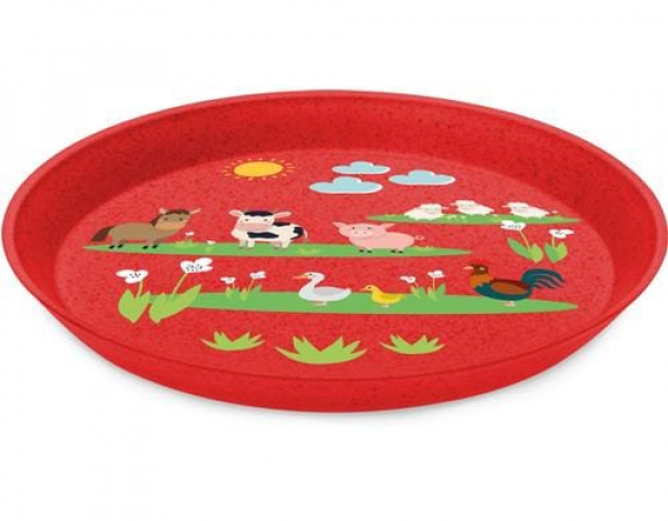 Koziol Kinderteller Connect Farm / 1 Stk., 20.5x20.5x2cm, rot, bio-circular / Thema: Kindergeschirr