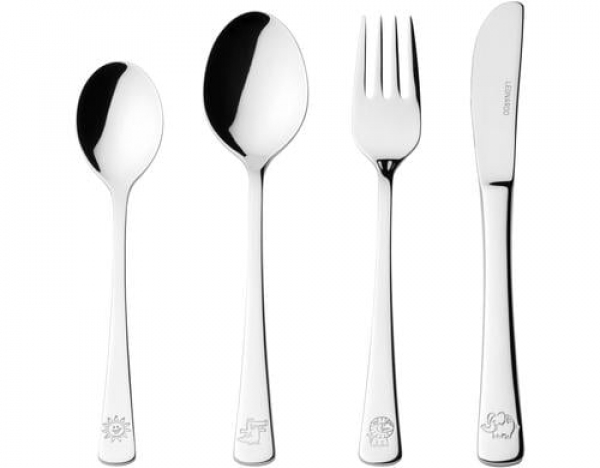 Leonardo Kinderbesteckset Bambini 4-teilig / Edelstahl 18/10, V2A, spülmaschinenfest / Thema: Kindergeschirr