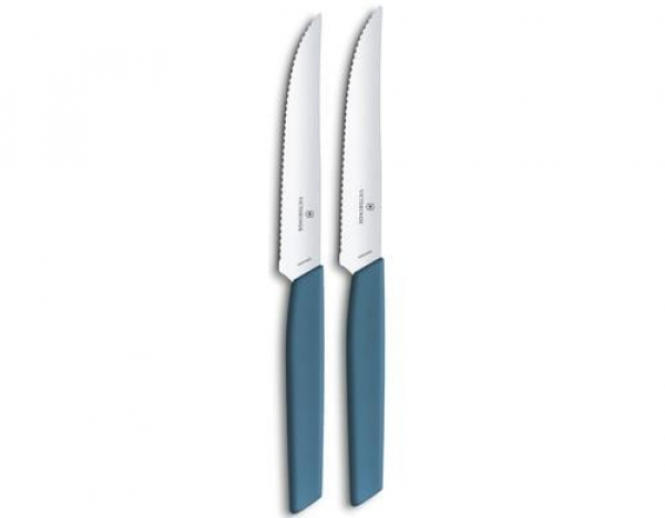 Victorinox Steakmesser-Set Swiss Modern 2 Stück, Blau / 2 Stk., blau, PP Copolymere / Thema: Messer