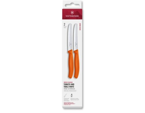 Victorinox Tafelmesser Swiss Classic, 11 cm, Orange, 2 Stück / orange, Set 2tgl, Wellenschliff, rund / Thema: Messer