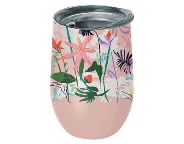 BioLoco Thermobecher Office-Marsh flowers 420 ml, Grün/Rosa / 420ml, Edelstahl, Titandeckel / Thema: Tassen & Becher