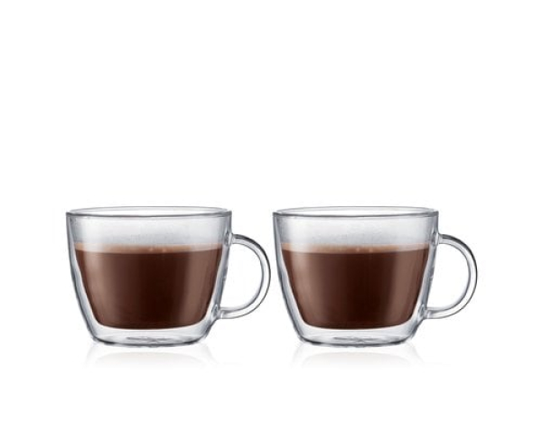 Bodum Caffe Latte Tasse Bistro 2er Set Transparent, 0.45 l / 2er Set, Glas doppelwandig 0.45L / Thema: Tassen & Becher