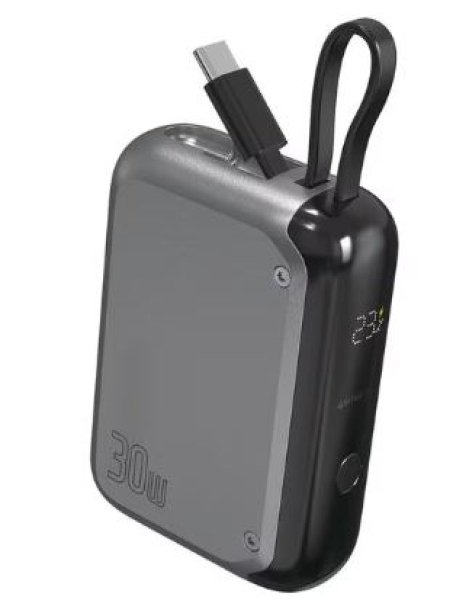 Bidirektionales Laden: Integriertes 15 cm USB-C-Kabel oder zusätzlichen USB-C-Anschluss verwenden, um die Powerbank selbst sowie deine Geräte aufzuladen. Kompakt & kraftvoll: 10000 mAh und 30W Ladeleistung bei minimaler Grösse. LCD-Display: Echtzeitanzeige des Ladezustands der Powerbank.