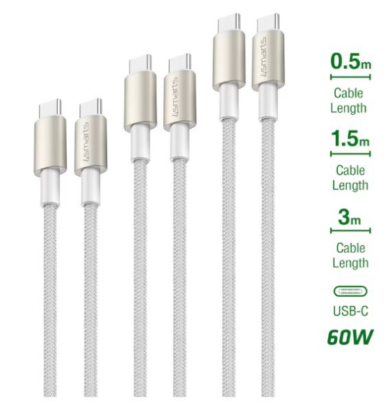 4smarts USB-C auf USB-C Kabel PremiumCord 60W 3erSet - weiss/silber