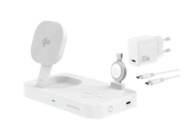 3-in-1 MagSafe-Ladestation mit inkludiertem Ladegerät und Apple Watch Charger