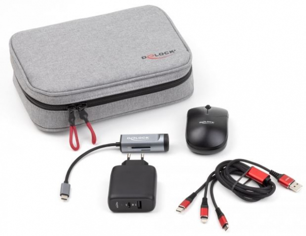 DeLock 18439 - Travel Kit IV Business Edition - USB Hub / Netzteil / Maus / 3 in 1 Ladekabel