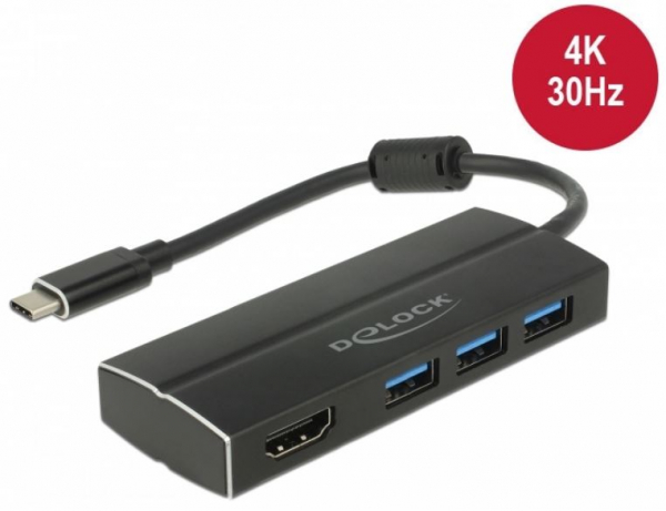 DeLock 63931 - USB 3.1 Gen 1 Adapter USB Type-C zu 3 x USB 3.0 Typ-A Hub + 1 x HDMI (DP Alt Mode) 4K 30 Hz