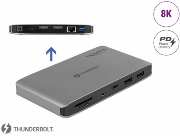 DeLock 87777 - Thunderbolt 3 Dockingstation 8K - Dual DisplayPort / USB / LAN / SD / Audio / PD 3.0