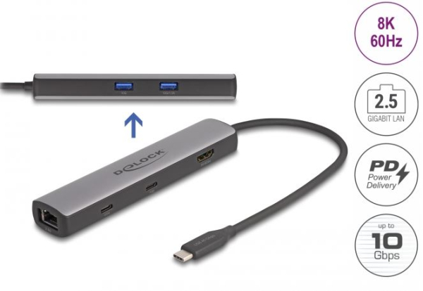 DeLock 87865 - USB 40 Gbps USB Type-C Dockingstation 8K - HDMI / USB 10 Gbps / 2,5 Gigabit LAN / PD 3.0 100 W