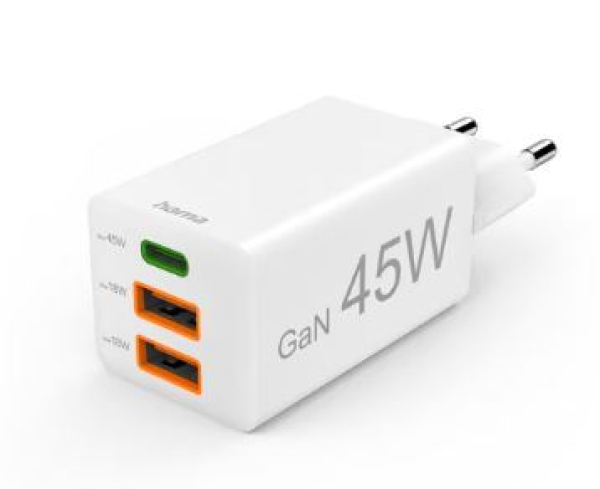 Hama USB-Wandladegerät Gan charger 2x USB-A USB-C 45 W Weiss