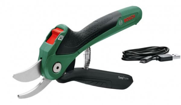 Akku-Gartenschere EasyPrune. Mehr Schneidkraft durch Power Assist Technologie. Einfaches Schneiden und Kürzen von bis zu 25 mm dicken Stielen und Ästen durch Kraftunterstützung. Power Assist Technologie bietet bei Widerständen automatisch Unterstützung. Kabellose Mobilität durch einen 3.6-V-Akku für bis zu 450 Schnitte mit einer Ladung. Sauberes Schneiden von dünnen und dickeren Ästen zur Förderung von gesundem Pflanzenschnitt. So einfach und intuitiv zu bedienen wie eine handbetätigte Gartenschere. Karton, Micro-USB-Kabel (1 607 000 CG9)