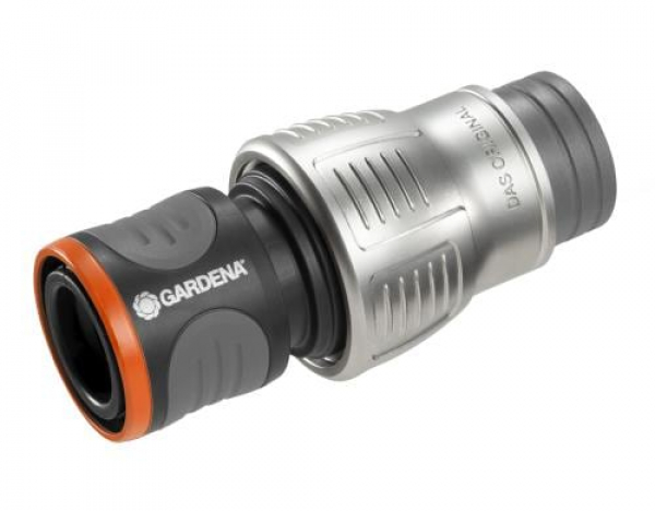 Der GARDENA Premium Schlauchverbinder 18256-20 ermöglicht den sicheren Anschluss eines Gartenschlauchs an einen Wasserhahn mit GARDENA-System-Hahnstück. Alles passt perfekt zusammen und bleibt wasserdicht. Die gerillten Griffmulden aus Weichkunststoff sorgen für einen guten Halt. Dank der stabilen Klemmmutter aus Metall hat der Schlauchverbinder eine hohe Schlauchhaltekraft und das Stecksystem lässt sich leicht montieren. Der Schlauchverbinder in robuster Metall-Ausführung ist für Schläuche mit einem Durchmesser von 19mm (3/4“) geeignet.