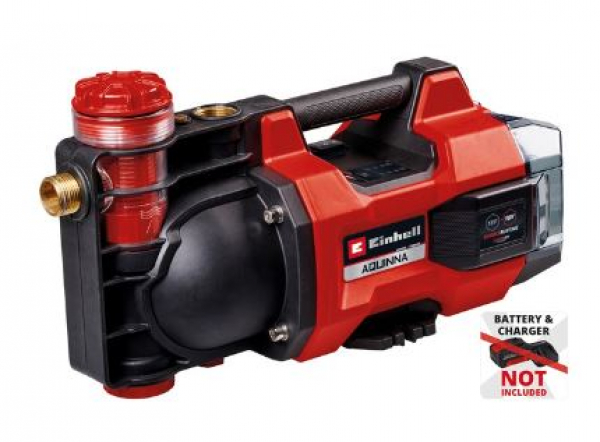 Mit der Einhell Akku-Gartenpumpe AQUINNA 18/30 F LED kann man unabhängig vom Stromnetz Regen-, Brunnen- oder Zisternenwasser im heimischen Garten und Grün benutzen, das spart Geld und schont die Umwelt. Denn die AQUINNA Gartenpumpe wird einem 18 Volt Power X-Change Akku betrieben, kann aber dank der beiden integrierten Akku-Steckplätze auch mit zwei Akkus für eine längere Laufzeit ausgestattet werden. Mit dieser Double Runtime Technology wird die Energieversorgung selbstständig auf den zweiten, vollen Akku umgestellt, sobald der erste Akku leer ist. Die Gartenpumpe wählt immer automatisch den Steckplatz aus, in dem ein geladener Akku steckt. Die AQUINNA 18/30 F LED eignet sich zum Bewässern und Gießen von Grünanlagen, Gemüsebeeten oder Gärten, zum Betrieb von Rasensprengern, mit Vorfilter zur Wasserentnahme aus Teichen, Bächen, Regentonnen, Regenwasser-Zisternen und Brunnen, oder zur Brauchwasserversorgung. Dabei kann zwischen zwei Leistungsstufen gewählt werden. Volle Power mit maximalem Förderdruck gibt es im BOOST-Modus, im ECO-Modus wird für die maximale Akku-Laufzeit mit weniger Druck gepumpt. Mit einer Förderhöhe von bis zu 28 Metern, einer Ansaughöhe von bis zu 6 Metern und einer Fördermenge von maximal 3.000 Liter pro Stunde überzeugt die AQUINNA Akku-Gartenpumpe auch mit Leistung. Das transparente Gehäuse rund um den Vorfilter der Akku-Gartenpumpe AQUINNA 18/30 F LED erfüllt gleich zwei Funktionen: Es dient als Wasserfüllanzeige und zeitgleich als Schmutzanzeige. Durch das transparente Vorfiltergehäuse ist auf einen Blick erkennbar, ob und wie weit die Pumpe bereits mit Wasser befüllt wurde. Außerdem ist leicht festzustellen, ob der Filter verschmutzt ist und gegebenenfalls gereinigt werden sollte. Die Pumpe ist mit einer Wassereinfüllschraube und zum Schutz vor Frost mit einer Wasserablassschraube ausgestattet. So kann sie im Winter sicher aufbewahrt werden. Der Thermoschutz schützt den Motor vor Überlastung. Mit ihrem praktischen Tragegriffs ist die Akku-Gartenpumpe schnell an jeden beliebigen Einsatzort gebracht. Zur dauerhaften Fixierung an einem bestimmten Einsatzort, ist die Gartenpumpe mit Befestigungslöchern ausgestattet. Die Lieferung erfolgt ohne Akku und ohne Ladegerät. Zum Betrieb der Akku-Gartenpumpe AQUINNA 18/30 F LED ist ein separat erhältlicher 18 Volt-Akku aus der Power X-Change-Reihe erforderlich, wie sie auch in den Einhell Werkzeugen und Gartengeräten benutzt werden.