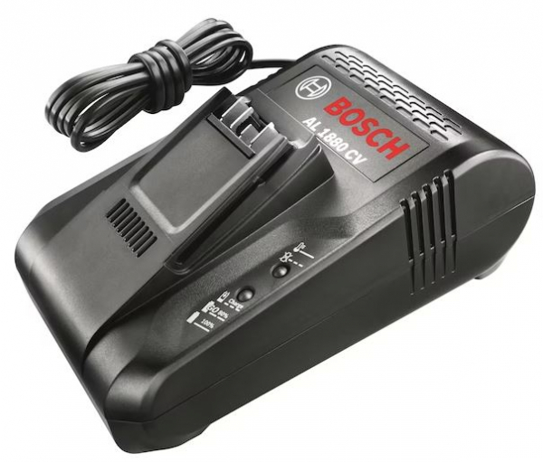 Das Bosch Schnellladegerät AL 1880 CV eignet sich für Bosch Akkus von 14,4 bis 18 Volt. Der Ladestrom beträgt 8 A und die Eingangsspannung 230 Volt. Durch das intelligente Ladeverfahren wird der Ladezustand des Akkus automatisch erkannt und abhängig von Akkutemperatur und -spannung mit dem jeweils optimalen Ladestrom geladen. Dadurch wird der Akku geschont und bleibt bei Aufbewahrung im Ladegerät immer vollständig aufgeladen. Im POWER FOR ALL 18V-System funktioniert ein einziger Akku für alle Geräte. Die Akkus sind seit 2007 zu 100% vor- und rückwärtskompatibel mit allen grünen Bosch Geräten der 18V-Klasse und mit vielen weiteren Geräten der Marken GARDENA, Bosch Home, GLORIA Haus und Gartengeräte, Wagner und Rapid innerhalb der POWER FOR ALL ALLIANCE. Den POWER FOR ALL-Akku einfach in ein Werkzeug oder Gartengerät der Wahl stecken, und es kann sofort losgehen. Das spart überflüssige Akkus sowie Ladegeräte, und damit nicht nur Platz, sondern bei jedem weiteren Kauf auch immer wieder Geld, und es schont dabei die Umwelt.