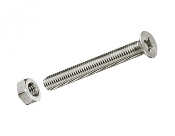 FTM Metrische Schrauben M 6 x 50 mm, mit Muttern, Stahl, 4 Stück / M 6x 50 mm DIN 965 Stahl blau vz 4 ST / Thema: Schrauben