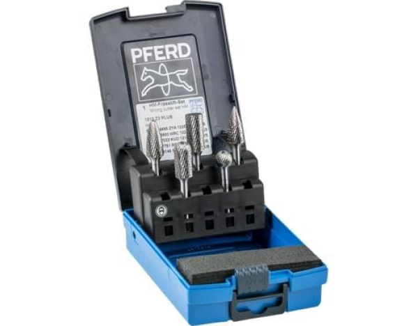 Pferd Hartmetallfrässtifte-Set 5-tlg. Zahnung 3 PLUS Schaft-Durchm. 6 mm / universal mittel kreuzverzahnt / Thema: Zubehör Multifunktionsgeräte