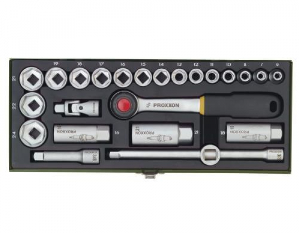 Proxxon Industrial Steckschlüssel-Set 3/8 24-teilig / für 6 - 24 mm, 24-teilig. / Thema: Steckschlüssel-Set