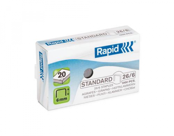 Rapid Heftklammern Standard, 26/6, 1000 Stück / 26/6, Schenkellänge 6 mm / Thema: Zubehör Befestigungsgeräte