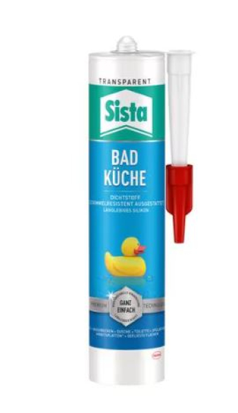 Sista Bad Küche Füllen und Ausbessern: einfach Abdichten im Sanitärbereich. Abdichten leicht gemacht: Mit dem Sista Silkon Bad Küche können in nassen und feuchten Umgebungen, wie Bad oder Küche, Fugen dauerhaft abgedichtet werden. Gleichzeitig schützt der Fugenfüller vor Feuchtigkeit und Schimmel. Ausgestattet mit der einzigartigen Fusion XLT Technologie von Henkel ist die Anwendung sehr einfach: Das wasserfeste Silikon trocknet schnell und lässt sich leicht glätten. Zudem zieht es keine Fäden und bietet eine geruchsfreie Anwendung. Da die Formel resistent gegen Schimmel ist, verhindert der Fugendichtstoff das Entstehen von Schimmeln in feuchten Umgebungen: Ideal zum Abdichten von Badewannen, Fliesen, Waschbecken, Duschen und Toiletten, aber auch von Spülbecken oder Arbeitsflächen.