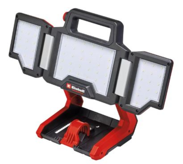 Die Akku-Lampe TP-CL 18/3000 Li - Solo von Einhell bringt Licht ins Dunkel - egal ob auf der Baustelle, bei Einsätzen in der Werkstatt, in der Garage oder im Garten. im Zusammenspiel mit einem leistungsfähigen Lithium-Ionen-Akku der Power X-Change-Familie (nicht im Lieferumfang enthalten) sorgt diese LED-Leuchte für optimale, stufenlos anpassbare Helligkeit. Mit 60 leistungsstarken LEDs und bis zu 3000 Lumen Leuchtkraft bringt diese Leuchte Licht in jeden Winkel. Die verstellbaren Leuchtpaneele ermöglichen dabei eine großflächige Beleuchtung in einem Winkel von bis zu 270°. Für ideale Lichtverhältnisse sorgt die neutral-weiße Lichtfarbe von 5700 K. Dabei bleibt die TP-CL 18/3000 Li - Solo stets handlich, lässt sie sich mit dem integriertem Tragegriff einfach transportieren und dank Haken und Ösen universell befestigen.