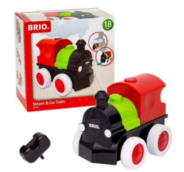 Der zauberhaften Push & Go-Zug von BRIO: Speziell für Kleinkinder entwickelt, fördert dieser freundliche Dampfzug spielerisch die Feinmotorik und regt zu Bewegung an. Ein Knopfdruck genügt und der batteriebetriebene Zug setzt sich in Gang, während ungefährlicher Wasserdampf aus dem Schornstein wispert - fast wie bei einem echten Dampfzug. Schon laufen die Kleinen mit Begeisterung dem Zug hinterher und schulen dabei spielerisch ihre körperlichen Fähigkeiten. Unsere BRIO-Spielzeuge für Kleinkinder bieten nicht nur robuste Qualität und kindgerechte Features, sondern auch ein attraktives, schnörkelloses Design, das sich in jede Wohnlandschaft einfügt und über Generationen Freude bereitet. Ein tolles Spielvergnügen für erstes Rollenspiel und interaktiven Fahrspaß!