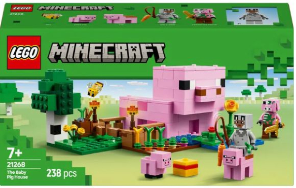 Das Babyschwein-Haus ist ein tolles Spielset für Minecraft-Spieler, die gerne Häuser bauen und Tiere und Farmen mögen. Dieses Bauspielzeug beinhaltet ein kreatives Farmhaus im Minecraft Wald-Biom sowie viele Charaktere aus dem beliebten Videospiel: einen Helden im Wolfsskin, ein Babyschwein, eine Biene, ein erwachsenes Schwein und einen Zombie-Piglin. Kinder können den Szenen aus dem Videospiel nachstellen und zum Beispiel das erwachsene Schwein satteln und eine Karotte an einem Stab vor seiner Nase baumeln lassen, um um das Haus und den Garten zu reiten. Auf einem Acker kann man Kartoffeln und Futterrüben anbauen. Und durch das Tor kann man das Babyschwein aufs Feld hinaus führen. Um dem Zombie-Piglin aus dem Weg zu gehen, müssen Kinder nur das Haus betreten. Dort stehen ein Bett, ein Bücherregal und eine Werkbank.