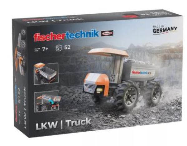 Der LKW von fischertechnik ist das Kraftpaket für den Baustellenbetrieb im Kinderzimmer. Mit seinem kippbaren Laderaum und den stabilen Rädern ist er bestens geeignet, schwere Ladungen sicher zu transportieren. Kinder ab 7 Jahren können den LKW mit der übersichtlichen Anleitung ganz eigenständig zusammenbauen und dann sofort ins Baustellenabenteuer starten. Dank der ansprechenden Farbgestaltung ist dieser LKW aus 52 Teilen nicht nur ein zuverlässiges Arbeitsfahrzeug, sondern auch ein optisches Highlight.